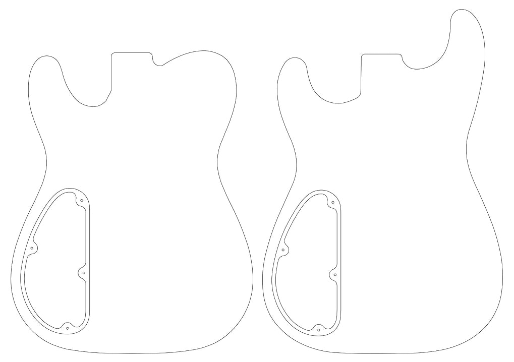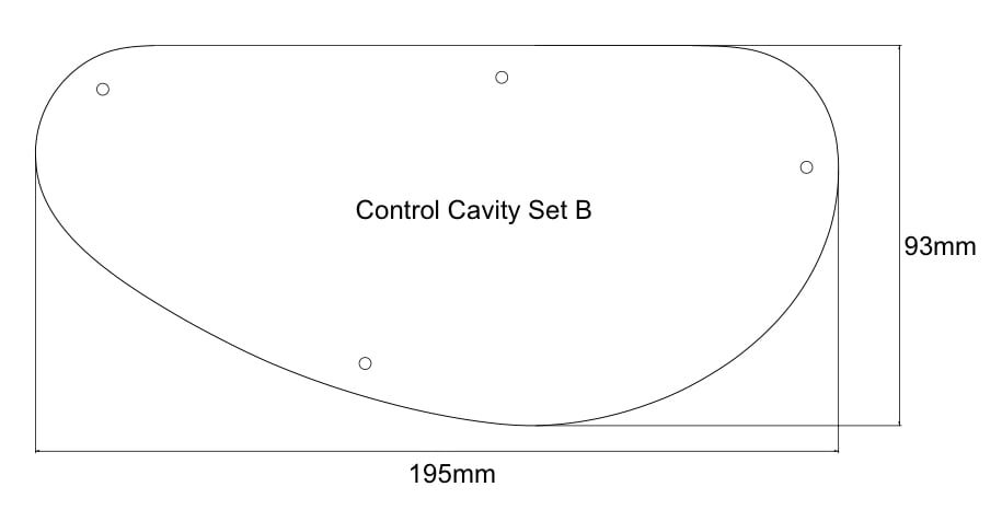 A universal control cavity routing set for guitar or bass, designed to fit many different shapes (see photos for example on T & S style bodies). The set consists of 3 templates.. the main cavity route, the recess, and a template for the cover plate.